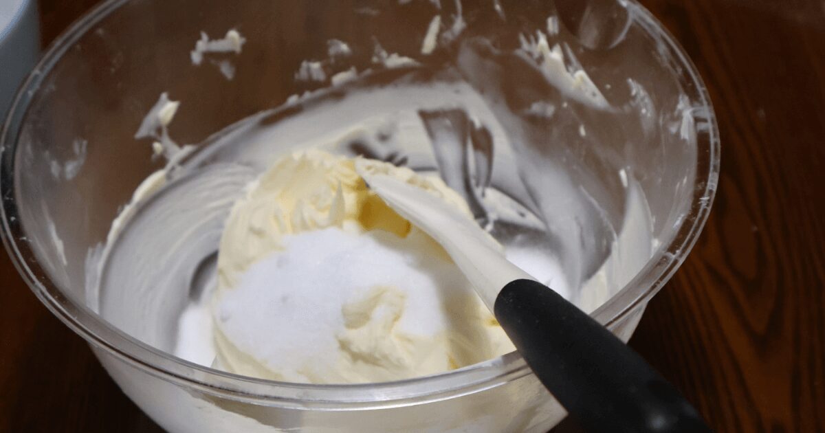 クリームチーズとグラニュー糖が完全に馴染むまでよく混ぜる