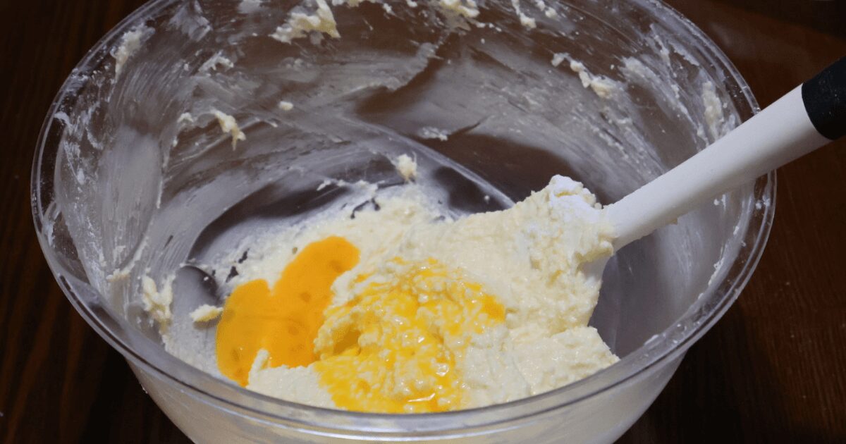 卵を加える時は少しずつ加え、その都度よく混ぜること。