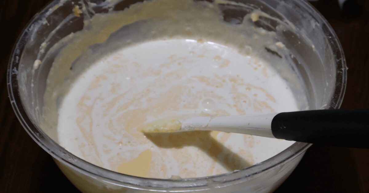 側面に付いた生地もしっかりと取って混ぜるようにしましょう。