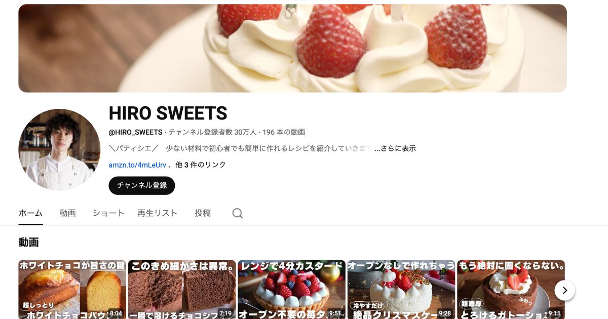 | チャンネル名 | HIRO SWEETS |