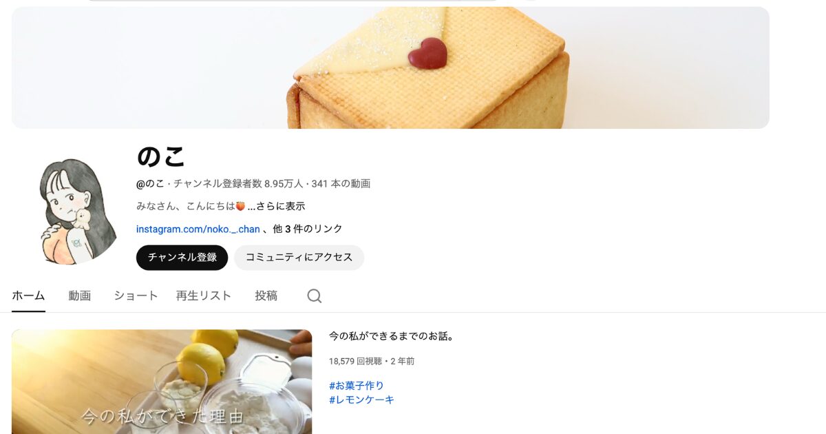 5人目はお菓子作り研究家・のこさんのチャンネルです。